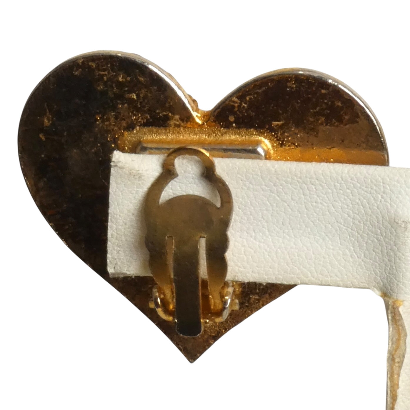 YVES SAINT LAURENT- 1980s Enamel & Rhinestone Heart Clip On Earrings