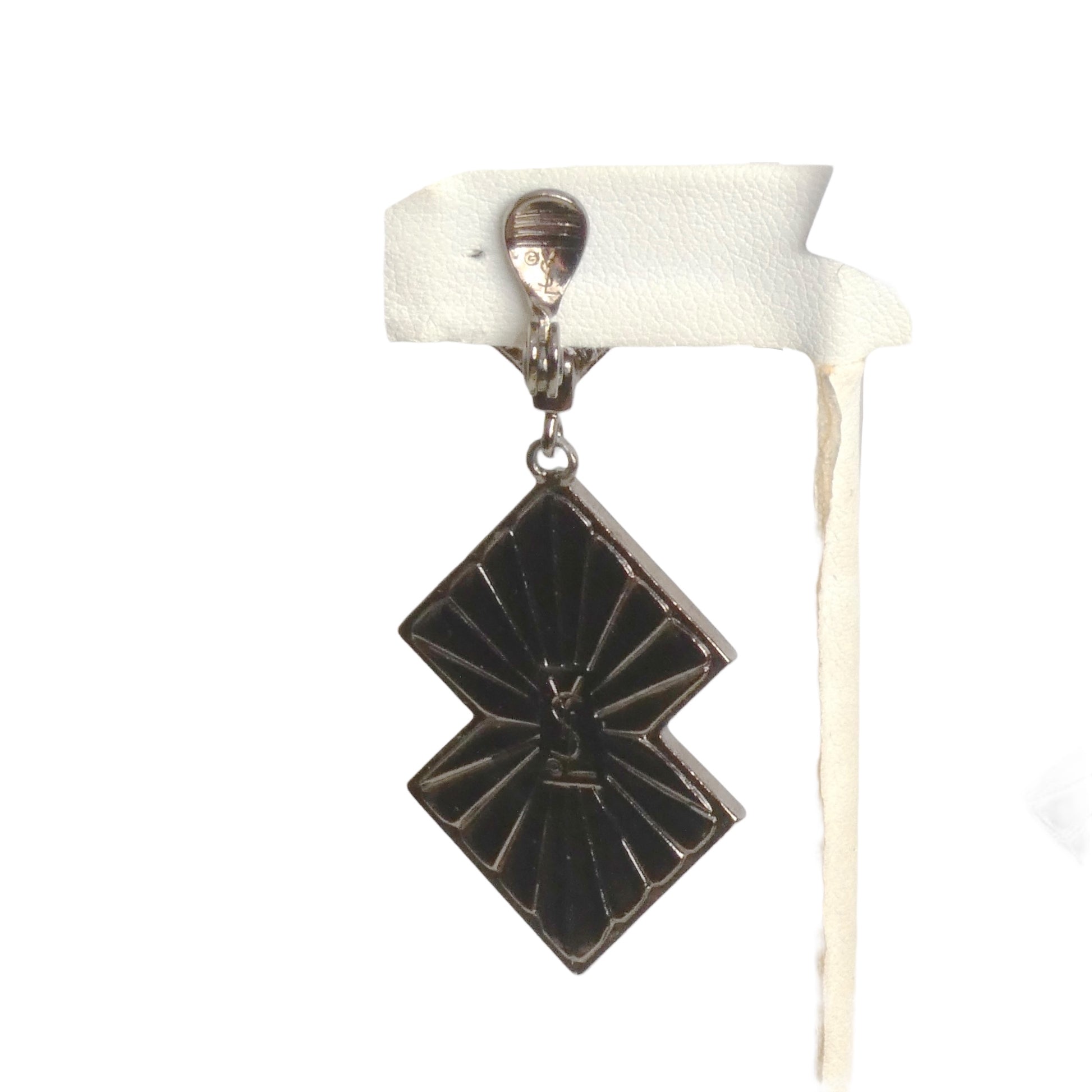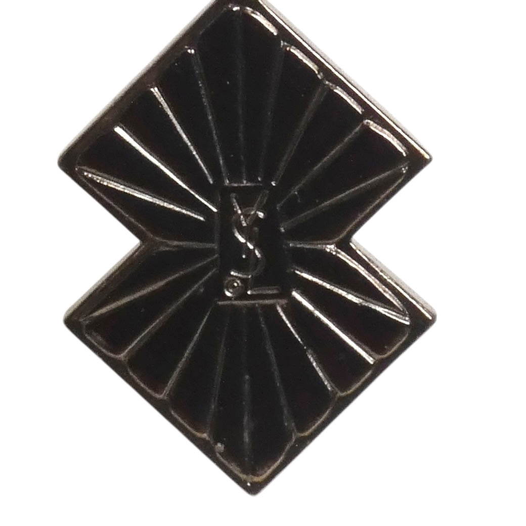 Description: These 1980s Yves Saint Laurent drop earrings feature a pewter-tone metal base with a square button top showcasing a mirrored center. The geometric drop design channels a Mondrian-inspired style, combining sections of colorful enamel with small mirrored accents. Equipped with tension clip backs, they ensure a secure and comfortable wear.