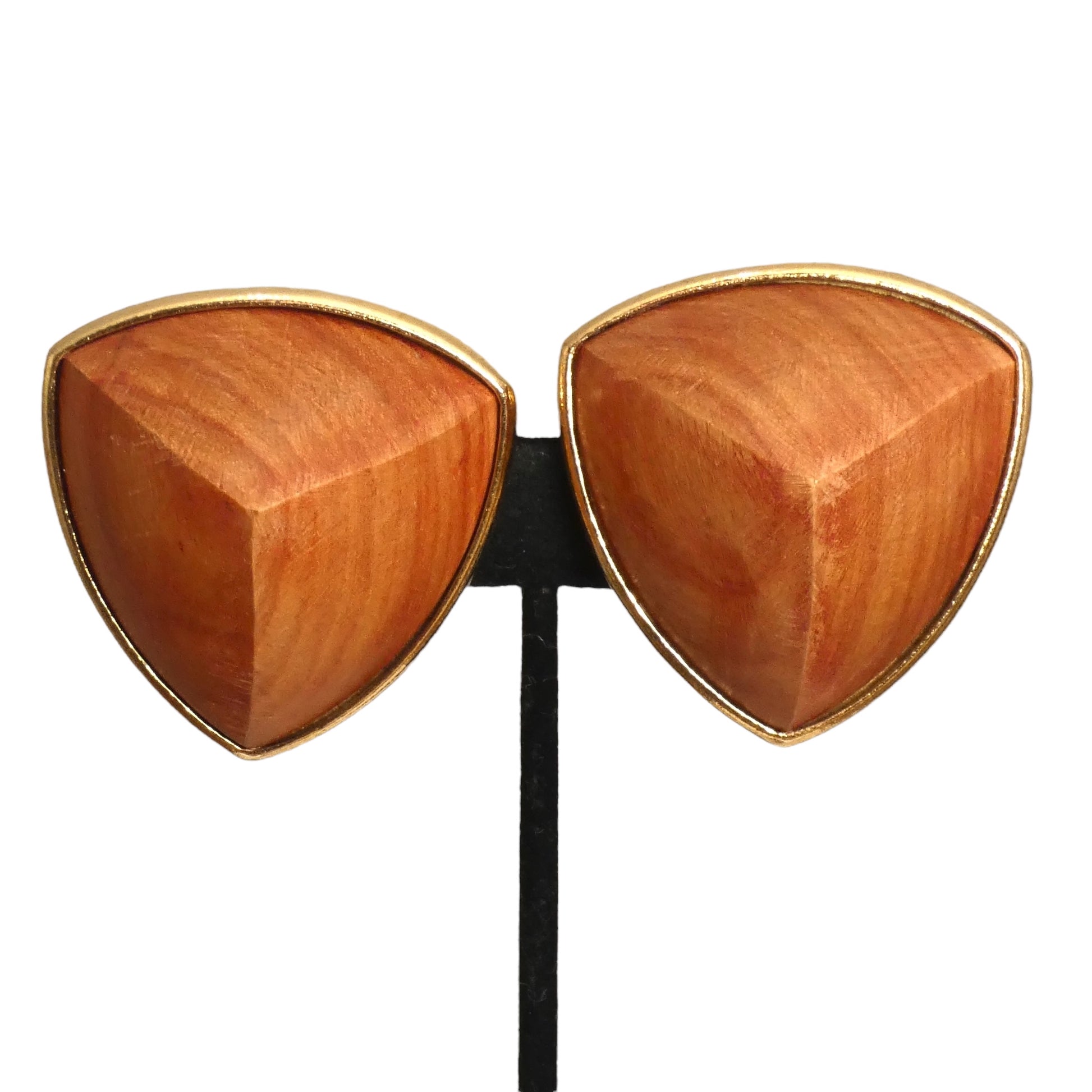 YVES SAINT LAURENT- 1980s Wood Pyramid Earrings
