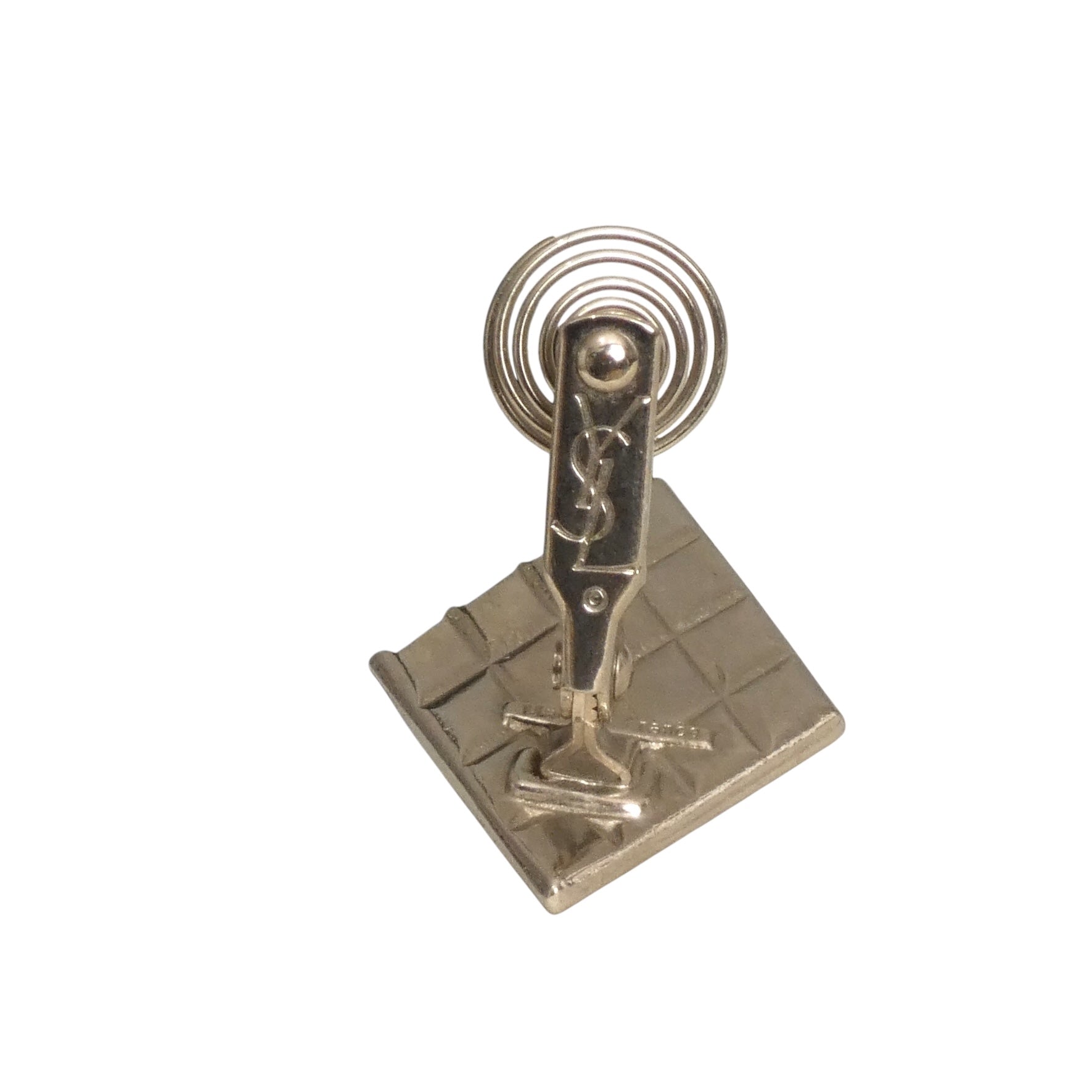 Description: Add a splash of sunshine to your look with these fabulous Yves Saint Laurent earrings from the 1980s! Showcasing a bold yellow diamond shape set in gleaming silver-tone metal, they sparkle with every turn. The comfy clip backs and metal coil design make them easy to wear all day or night. These vintage gems are perfect for anyone ready to brighten up their style and stand out in the crowd. Snag a piece of legendary fashion fun today!
