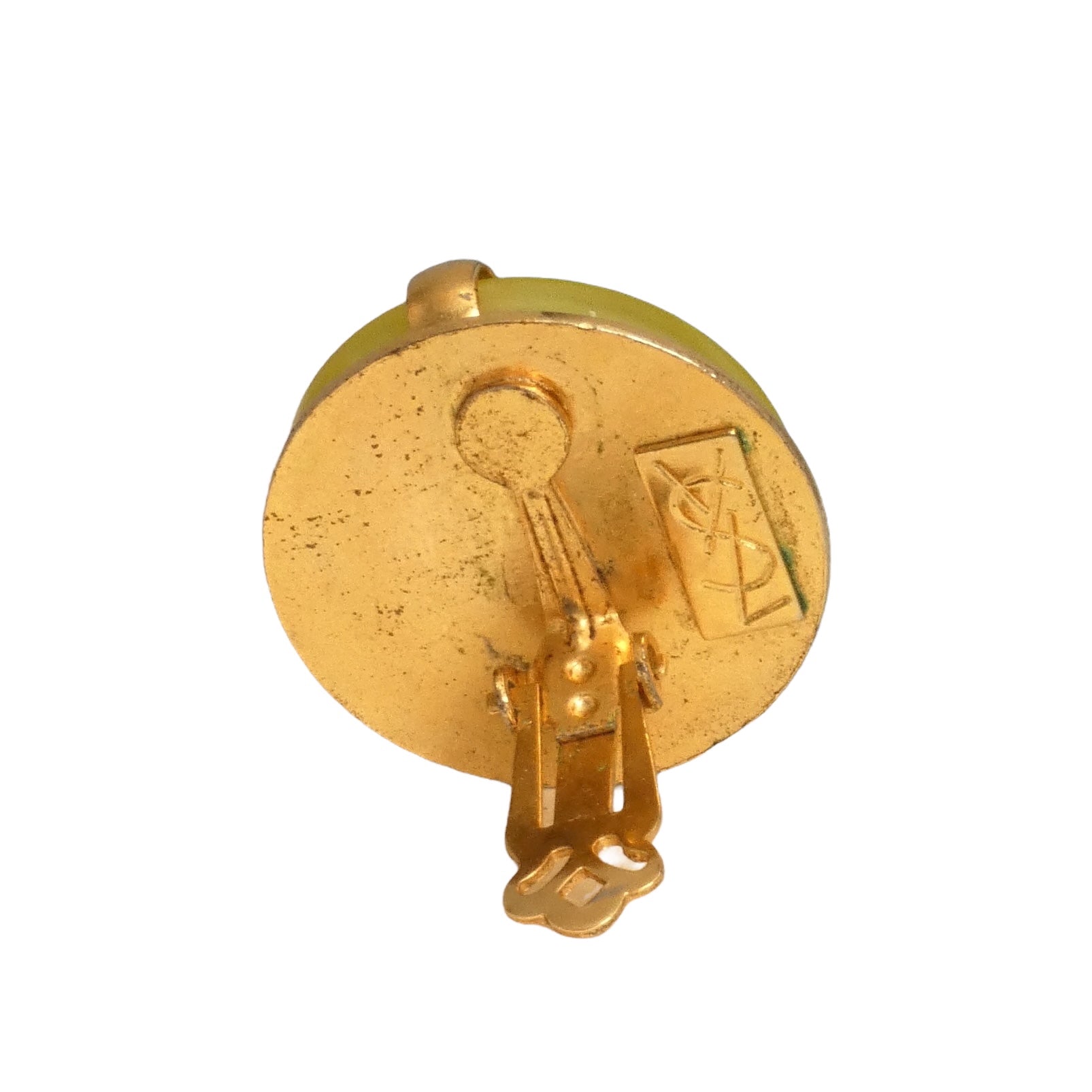 Description: Brighten up your style with these eye-catching Yves Saint Laurent earrings from the 1960s! Showcasing marbled yellow lucite rings perched on a shiny gold-tone base, these clip-back beauties mix vintage vibes with a fresh twist. Their lively color and distinctive design make them the perfect pop for any outfit, helping you sparkle with easygoing elegance. Bring some retro glam into your jewelry box today!