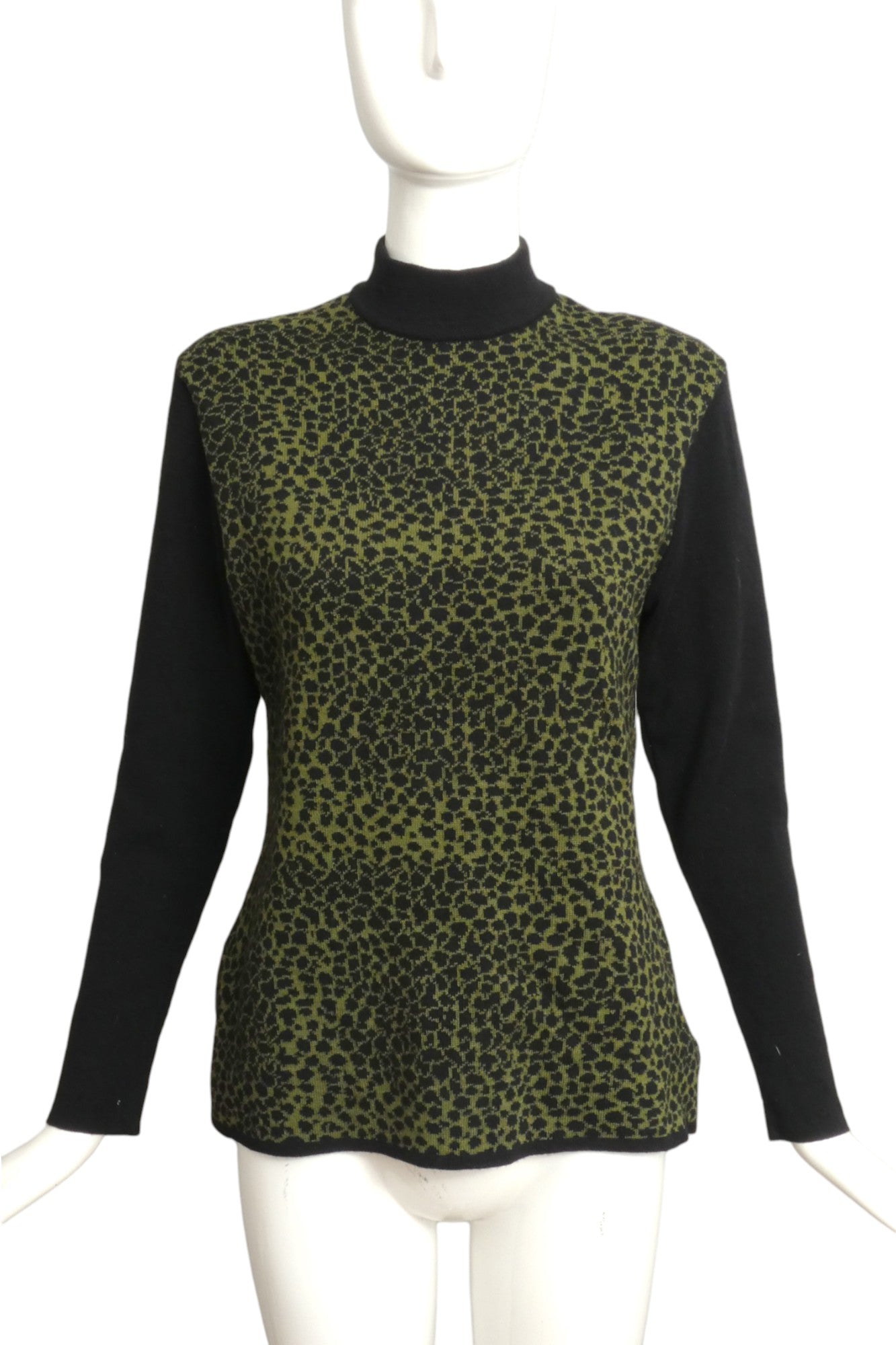 YVES SAINT LAURENT- 1990s Animal Print Wool Sweater, Size 10
