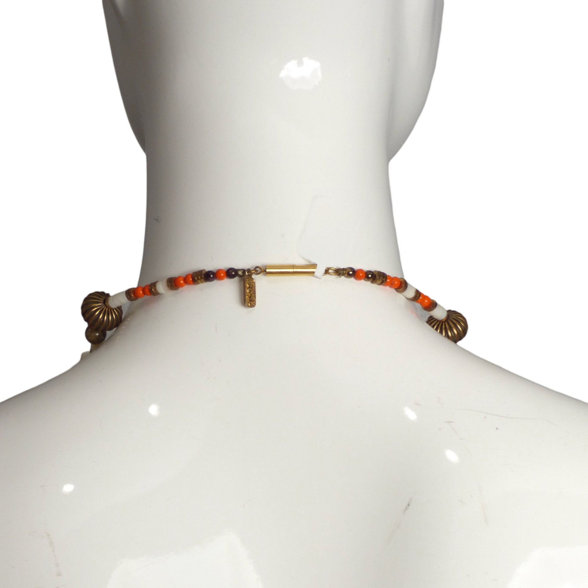 YVES SAINT LAURENT- c.1970 Shell Bead & Medallion Necklace