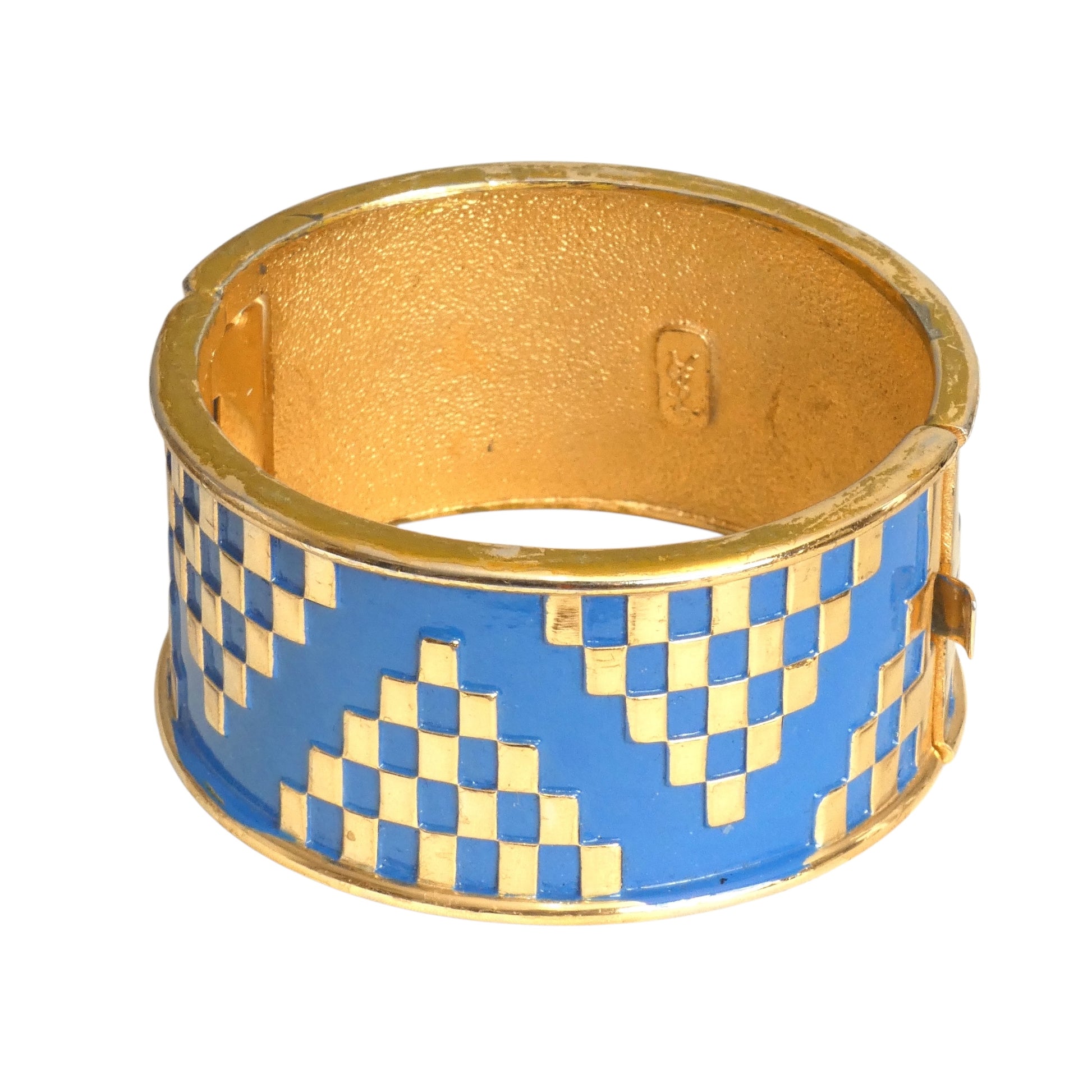 YVES SAINT LAURENT- 1980s Gold Metal & Blue Enamel Bracelet