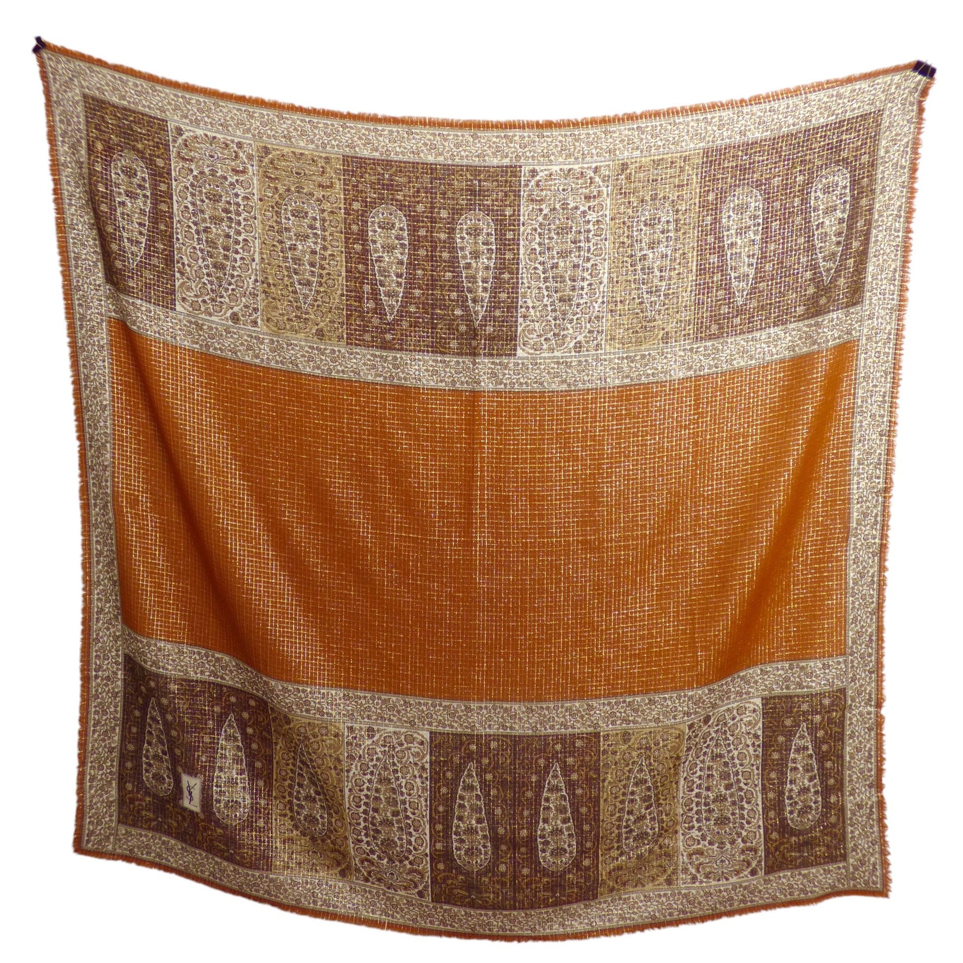 YVES SAINT LAURENT- Gold Metallic Wool Scarf